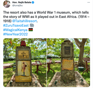 Over the New Year and while staying at the Saltlick Safari Lodge, Hon. Najib Balala - Kenya's Cabinet Secretary for Tourism & Wildlife visited the First World War Exhibit at the Taita Hills Safari Resort.